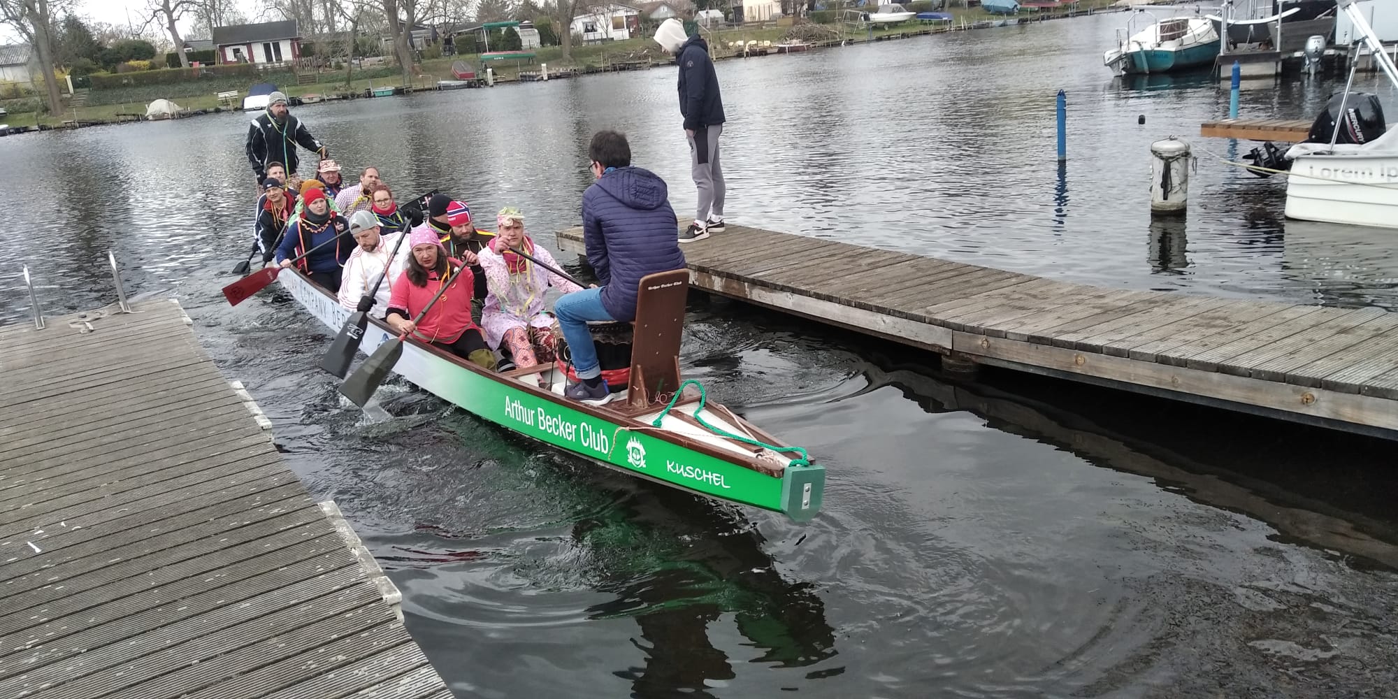 Einige Teammitglieder ließen es sich nicht nehmen, passend zum Anlass kreativ aufzutreten – die Bilder sprechen dabei für sich. Auf dem Wasser zählte dann aber vor allem der Rhythmus im Boot und der gemeinsame Zug.