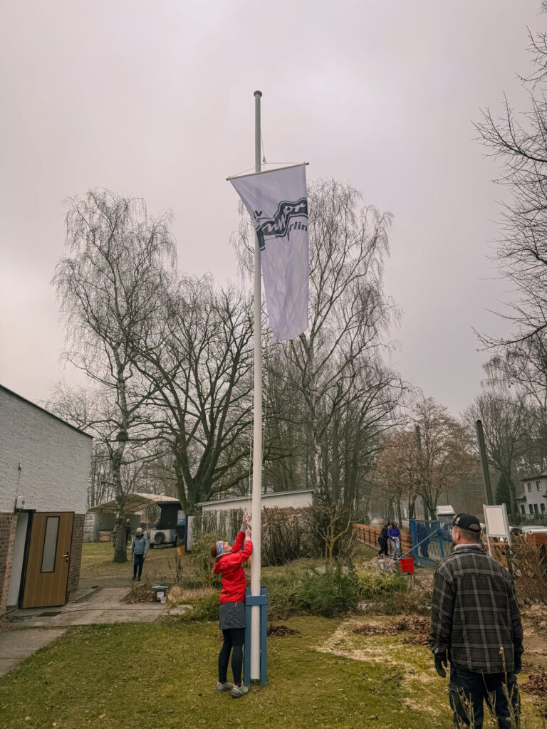 Nach getaner Arbeit weht die Empor-Fahne stolz über dem Gelände.